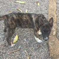 Approx. D.O.B. March 2023. Dozer, was found on the road in San Vicente as just a tiny puppy. He is a little character and so adorable. He is a big ball of fun. Alone he is the best dog, with other dogs he tends to be a ring leader. He is good with other dog's. He isn't a fan of ther dog's by his food.