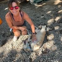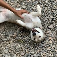 Approx. D.O.B. May 2022. Ziret, was found on the highway with an injury around her neck. She is super sweet! Ziret is also pictured below with Robin. She is such a happy girl, active and loves to play! She really likes to play with her ball most of all! She can be with other dogs but she likes to be the queen. She is really smart and also enjoys walks.