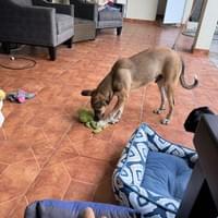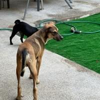 Approx. D.O.B, February 2023. Rescued from the street with one male puppy (Palomo) full of fleas and ticks. Someone was feeding them but they had no owner. Person went to the Bucerias Clinic and asked for help. This young tigress is full of life. She loves to run, play, and be pampered. Tigrena is very good with peopleāshe thrives on attention, enjoys cuddles, and lights up when someone takes the time to play with her. Sheās also great on a leash and loves going for walks. When it comes to other dogs, Tigrena is a bit more selective. She doesnāt live peacefully with many, but she has one true best friend: Robert, her cage mate and the only dog she doesnāt want to spar with. Sheās rough with others, so sheād do best as the only dog in the home or with a carefully matched companion. Tigrena would thrive in a home that appreciates her strong personality, gives her space to run, and showers her with the love she craves. Sheās not for every householdābut for the right person, sheāll be a fiercely loyal and joyful companion