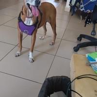 Sophia's approx. D.O.B. is April 2023. She is healthy and happy. Her foster parent says: "Smart pup. She is amazing. HAPPY all the time and gets along with all dogs. She is good on the leash. Affectionate and all around a good girl. She is full of energy and and loves to play with her foster siblings, when her foster siblings are tired she just keeps on playing quietly on her own. (6 foster siblings of varying age and sizes). She also loves to play with humans. She keeps herself entertained when everyone else is taking a break as she is very energetic. She has been going for morning walks with two of the bigger dogs with a dog walker that has them all trained on a leash and allows them off leash at the park or beach and they come back as soon as he calls. As I said she is full of energy and would love a yard and others to play with (human and dog). She has an injury to her lower back a few months ago and it affected her peeing. She usually goes outside (doors always open) to pee, but tends to start walking away before she finishes leaving a little trail behind. Like a pup if she gets excited she can sometimes pee on the spot wherever she is. The vet is hopefull she will gain better control as she grows."