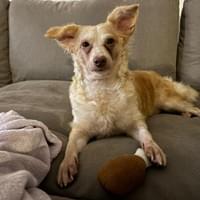 Simon arrived with a rough case of mange and a tail full of tumors — but thanks to loving care, his skin is healing beautifully and his tail (now amputated) is no longer a source of pain. Born around April 2019, this little guy has come a long way, and he’s ready to settle into the peaceful home he deserves. Simon is quiet, shy, and so incredibly sweet. He’s house trained, walks like a dream, and doesn’t mind other dogs — though he prefers calm companions over puppies or high-energy pups. He’s the kind of dog who does his own thing at home, heading straight to his bed to chill like a seasoned nap professional. He’s currently with a foster and has already claimed his favorite sleeping spot. He loves affection, enjoys being picked up, and is perfectly fine with baths. He also requires thyroid medication, but he takes it like a champ. And separation anxiety? Not in Simon’s vocabulary. Leave the house, come back hours later — he’ll still be snoozing in the same spot, blissfully unaware you ever left. Simon may be missing a tail, but he’s full of heart. If you’re looking for a calm, cuddly companion who asks for very little and gives back so much, Simon is waiting with his bed fluffed and his heart open.