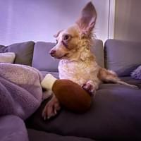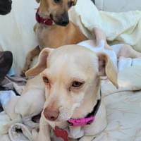 Born around March 2024, Chetos is a calm, friendly soul who gets along beautifully with other dogs. He loves to play, be petted, and — adorably — carried. He walks like a pro on a leash and enjoys strolling side-by-side with his canine pals, making him a dream companion for outings and adventures. Chetos has spent his life in an outdoor shelter, so home life will be new to him. But his gentle nature and easygoing spirit make him a wonderful candidate for learning the ropes. He’s ready to trade shelter dust for cozy blankets, and uncertainty for unconditional love. If you’re looking for a dog who’s survived hardship with grace and still believes in kindness, Chetos is your guy. He doesn’t ask for much — just a chance to be safe, loved, and finally home!