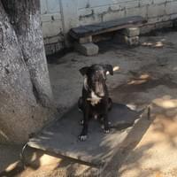 Approx. D.O.B. June 2025. Someone found him in San Vicente area close to a taco place. People just fed the dog but no one picked him up until this man did. He cared for Oreo for one week , then asked Amador if he could help to find a place and Dr. Amador called Sandra. He is a sweet guy, super chill.