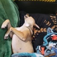 Born around January 2020, Frito’s story began quietly—just like him. He was found sitting calmly outside a house, simply waiting for someone to notice him. The people there said he wasn’t theirs, but someone saw the kindness in his eyes and made sure he wouldn’t be forgotten. Now in a loving foster home, Frito has shown us what a truly special dog he is. He’s a sweet, affectionate boy who adores cuddles, gentle pets, and being close to the people he trusts. There’s a peacefulness about him—the kind of presence that makes a home feel softer and calmer just by having him in it. As we’ve gotten to know him better, we’ve discovered even more reasons to love him. Frito is incredible on leash and wonderfully laid‑back around other dogs. He never barks at them and never initiates any kind of behavior—he’s genuinely one of the chillest little fellas you’ll ever meet. He does, however, have a bit of a playful instinct when it comes to wandering feral cats and may give chase if they cross his path. He absolutely loves car rides and is housetrained. He also does beautifully with kids who are gentle and respectful of his calm nature.