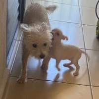 Devin’s journey began at Lago Real mall, where a homeless gentleman was doing his best to care for him. This pint-sized pup had a broken jaw — likely from being hit by a car — and arrived at our rescue scared and fragile. Born around August 2023, Devin has come a long way since those early days. With gentle care and time, he’s blossomed into a happy, playful little guy who loves life and brings joy wherever he goes. He’s small, but his spirit is mighty. And those eyes? One brown, one blue — a little patchwork of magic that stops you in your tracks and makes you fall in love on the spot. In foster care, Devin has shown how comfortable he is with big dogs and loves dogs of all sizes, happily fitting right in. His housetraining is progressing: He is going outside but was marking (could be due to a new male foster coming in); He is doing it less and less now - It’s also been very cold, but he will go outside and there is another recent male foster in the house as well. Devin is sweet-natured, friendly, and ready to find a home where he can keep growing into the confident, cuddly companion he was always meant to be. If you’re looking for a tiny treasure with a story of resilience and a heart full of love, Devin is waiting to meet you.