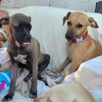 Born on July 29, 2024 to the lovely Muneca, Goofy is a happy, healthy boy are growing up side by side—sharing snacks, snuggles, and a serious love for plastic bottles (who needs fancy toys when you’ve got imagination?). Goofy is the kind of pup who makes every day feel like a playdate. With medium energy and a heart full of sunshine, he is always up for a romp, a cuddle, or a good old-fashioned belly rub. He adores people—especially kids—and get along beautifully with other dogs. Whether he is chasing his sibling in the yard or curling up for a nap, he does it all with joy and gentle affection. Goofy’s Highlights: • Born July 29, 2024 (puppy perfection!) • Medium energy—playful but not wild • Great with kids, people, and fellow dogs • Bottle-chasing champions (plastic only, please!) • Sweet, snuggly, and love to be pet • Currently living in outdoor shelter—will need help learning the comforts of indoor life. He is ready to bring joy to a loving home.