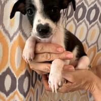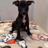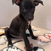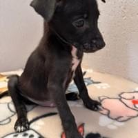 Born January 21, 2026, Calixto is one of four precious puppies who survived after their brave mom, Capulina, gave birth to six. Two siblings were lost at birth, but Calixto and his brothers—Cielo, Cayenne, and Cortez—pulled through, carrying with them the strength of their mother’s love. Calixto is a striking little boy, black with dainty white toes that look like he’s dipped them in paint. He’s playful, curious, and already showing the spark of personality that makes him unforgettable.