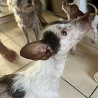 Born around December 2023, Blanca is a young mama who has already shown incredible resilience and sweetness. She was rescued with her two little boys, Bob and Baxter, after being found covered in fleas and ticks. Even in those rough conditions, her joyful spirit never faded. From the moment she arrived, Blanca has been a happy, social, and active girl who loves being around people. She has a playful energy, a friendly nature, and a little bark that she uses just to say hello. Because she’s currently living in an outdoor shelter, she’ll need some gentle guidance as she learns the routines of indoor living, but her eager‑to‑please personality makes her a wonderful candidate for a loving home. Blanca is now safe, undergoing her rescue protocols, and can be reserved for adoption. She’s ready to leave her difficult start behind and step into a life where she’s cherished and included. If you’re looking for a sweet, lively companion who brightens every day, Blanca may be the perfect match.